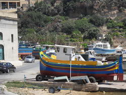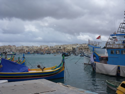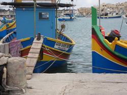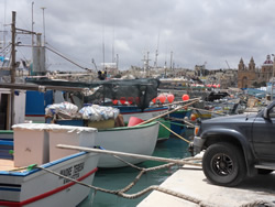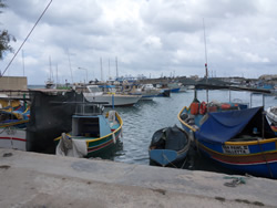 Our next destination was to "Marsaxlokk, a fishing village to the south. This is a place to admire the typical brightly coloured fishing boats known as II-Luzzu", fishing nets that are most of the times spread on the quay to dry on the sun, other fishermen can be seen mending their nets". Or so the literature said. The village was truly a rather large town, with a back drop of a container port, still we had an hour and a half to kill for lunch here.