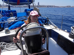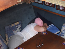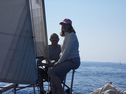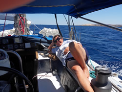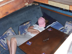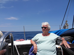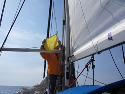 As we make our way slowly up the coast we work the sails to get best performance, scorning at the others as they motor past. Hazel utilises her energy, some times she lies on her side, some times on her back?