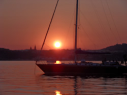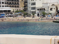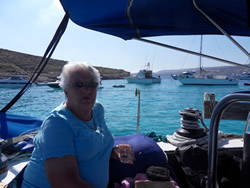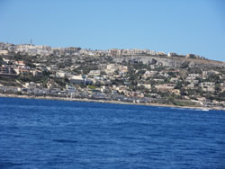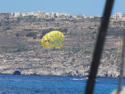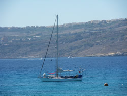 We now made our way back to the east side of Malta, through the channel between Malta and Comino, lunch time was fast approaching to we decide to stop at an anchorage in Mellieha Bay. We made our way over to the resort of "Mellieha Bay", there was dozens and dozens of boats already there? We stayed well back from the bulk of the visitors, dropping our anchor in about five meters of water. Ann set about making lunch while I secured Sailaway, Mum kept her eye on "things". In the distance more boats were streaming in?