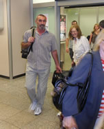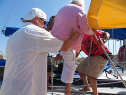 Then comes Mum's best event of the day, two young men to man handle her (literally) in and out of the boat onto Sailaway - hands and legs every where, still, she enjoyed it!