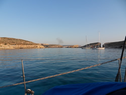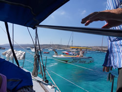 Hazel eventually joins us again as we approach our destination, an anchorage called "Blue Lagoon" on the north of Comino island.