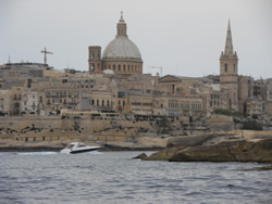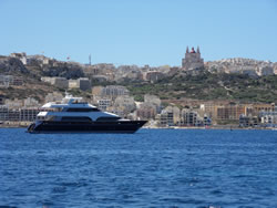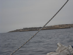 The night has been interesting with winds from almost all directions, all, unfortunately light. We were reduced to motoring around midnight, we now had no wind and the heat from the sun quite intense. With Gozo, the island to the north of Malta coming into view at day break we feel it is time to drop the Italian courtesy flag and raise the Malta flag. Although Malta is in the EU it still maintains strict clearance conditions, it is the only country in the EU that insists that a "Q flag" is flown, requesting "free pratigue" as a healthy vessel.