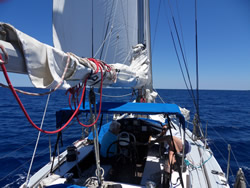 We left our berth at about 1300 hours "ready for the Greek islands". We make our way out of the port of Valletta, struggling, one must admit to make our way over the bar and out to sea due to the oncoming waves. As we left the shelter of the port the swell was considerable, but more concerning was the wind direction, from the east, no good what so ever for Greece? Our plan "B" if the wind was no good, was to retreat to one of the anchorages to the north and await better winds? We made the decision to push out to see and see if the wind became more stable, so we did. As we made our way off shore there was a wind shift, but not to the south as forecast, but to the north. Within two hours it was clear that our only destination, other than the anchorages, could be Sicily, and that would take some work? We set our coarse and sails and on we continued, the winds did grow to strong, at least some of the forecast was correct, this brought the building seas and a "confused swell" for what ever reason. We had considerable waves from both the east and the north, we were either sliding down the side of the swell burring our stanchions well into the water at their trough, or, when from the north the waves, a series in short period, almost bringing us to a halt? Nothing was consistent, the seas were very confused, but we were making an average of 4 knots over all, so we decided to carry on. Our destination was now Porto Palo, on the very south east tip of Sicily, our anticipated arrival time 0400 ours, Friday morning.