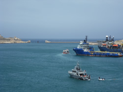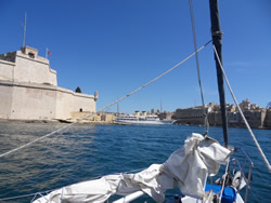 There are two waterways, north and south of Valletta, the waterways were guarded over time by three forts, Fort Tigne to the north, Fort St Elmo off Valletta and Fort Ricasoli to the south. The marina is in Msida Creek down the northern waterway, we find the entrance below Fort Tigne relatively easy. We make our way around the local vessels, upon finding the marina we discover that the Customs clearance/visitors quay has gone. The marina does not answer neither VHF or telephone? We are now tired, calling around the only marina to reply was The Grand harbour Marina within the Grand harbour it's self, we make our way back out to sea and around to the Grand Harbour seeking clearance from Valetta Port Control.