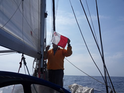 We left about 1300 hours as planned, the wind was strong enough now to allow us to make good way with the the headsail up.