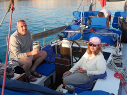Dave and Hazel are with us for a week, we meet them at the airport, the first thing we have to confess to is that while we were waiting we had been into Burger King and demolished two whoppers, fries etc, etc! Ann and I had seen the sign advertising burgers in the taxi and both gained an instant crazing for them, we could not remember when we last had a burger? They were lovely, well at least to us! We arrange a taxi to take us back to Sailaway, unfortunately all work enabling us to sail in the morning (Tuesday) was not complete, we had been at it since 0700 hours. We asked Dave and Hazel to "go on the wander" for a few hours until we finish off, there is plenty to see locally, we arrange to meet in one of the water side bars. I have to source some more gearbox oil and complete the oil change after I had packed all of the shopping away - I never stop! Ann goes off to meet up with them as planned, bad news, during their chatting they notice the menu - well that's the evening meal sorted. We get organised on board before we head off to eat.
