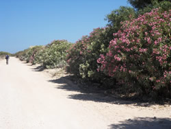 The small concrete road servicing the quay is less than 50 meters long, it is then reduced to rock and sand as it makes it's way into the island. The colours are fascinating, even what looks like "Scottish heather" grows here in this baron place.
