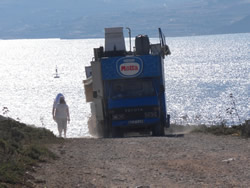 As we make our way back to Sailaway we are passed by the mobile food vans, finished for the day, back in the morning. One of the trucks had only three wheels on it's four wheel rear axle - no M.O.T's here? Unfortunately, the day is dampened, climbing back on Sailaway from the dinghy Hazel looses her glasses over board in about eight meters of water - lost forever in amongst the weed!