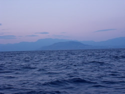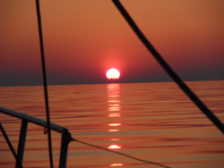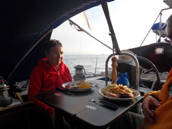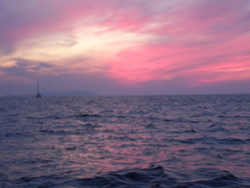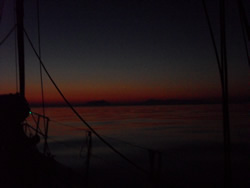 We know the trip to be of approximately 36 hours, depending on wind etc, as darkness begins to fall, so does the wind so, once again we are accompanied by our engine's drone, we motor without incident through out the night. We begin our sleep shift pattern, it is more difficult to sleep under power, not only because of the noise but also the heat produced - some times better to try and sleep on deck?