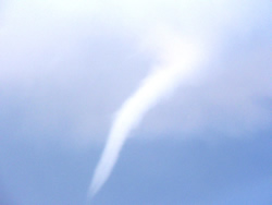 I took a long look around for traffic and popped down below to check our position, once done I returned to the cockpit, it appeared the wind was changing. I shouted Ann up "quick it looks like we may jibe?" I was now focused on all indications of the wind direction, flag, wind generator and gauge, all seemed a little erratic? I had no sooner got the words out of my mouth when I saw the needle on the wind gauge showing the wind direction spin and the boat jibed. The wind change pushed us hard over and all of the sails were now on the wrong side, we had a preventer on the main sail so damage was minimalised? Then, as quickly as the wind had changed previously, it changed again releasing the pressure on our sails, Sailaway popped up right, sails flapping in the wind? Ann looked up from below, "what the hell was that?" I called looking around us for a cause? Ahead of us in the great bay north of Rethymno, tornados could be seen reaching down from the sky, creating water spouts as the wind drew the water up from the sea towards the sky. Ann was now in the cockpit with me - "get all canvas down!" I called, I was quite proud of us, it was all down and secured in what seemed like seconds, strange thing fear! The sea was now quite violent and the wind strong and confused, Sailaway was now motion less, bouncing in the swell. "We will sit it out here until things settle down" I called, on went the kettle! We watched as we saw at least six of these spouts develop to different degrees, it was hard to get good pictures as the motion of Sailaway was quite violent. The spouts appeared to the east, west and ahead of us and went on for over thirty minutes. We were not alone, a large passenger ferry sat off shore with us, the weather system was easily identifiable now, we watched it progress south, onto the land. The ferry moved before us, well, he was bigger, we again started the engine and moved apprehensively towards Rethymno.
