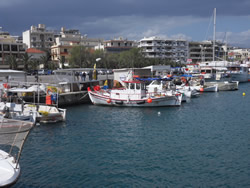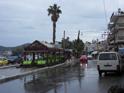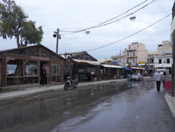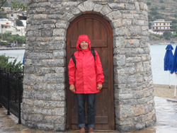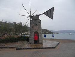The town has a special car park for the coaches that bring in the groups of tourists to visit Spinalonga Island, they then make there way to the water front and usually from what we have seen have a meal included in one of the water front restruant's, additionally there are the independent visitors, making their own way to visit the island of which the lagoon is famous. The town, due to the weather is clearly lacking visitor, the streets almost empty apart from the people in shorts and raincoats adamant that they will enjoy it - it must be quite disheartening to have any form of holiday with this weather? We decide to have a coffee in one of the tavernas called "The Ferryman", we had see it from Sailaway and was curious as to it's name if nothing else? We get talking to the owners, a couple from Cramlington, a town in the north east of England (Gods country!), they have lived here for some years now and they love it. They now have their business up for sale, looking forward to retirement we guess, did not like to ask? We bid our farewells and leave to check out the so called supermarkets, plenty of them but all small and poorly stocked, with regards to our beloved salad and fruit there is only one store that seems not to leave it's stock out on display until it rots, still we are Ok for oranges?