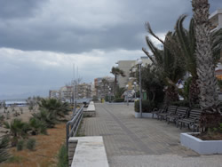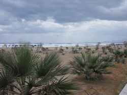 The Tourist Information Office was also out side the marina, we popped in to get up to speed with what was around and of coarse what was happening for Easter, we had been told of wonderful parades as Easter is traditionally celebrated more than Christmas? The gentleman was very helpful with regards to the city, we asked a specific question but had to under go a full barrage of information that the chap probably repeats hourly if not more often? He does tell us however that at Easter, in the city little happens and points out a couple of churches were things might happen. He tells us that most people go back to their home villages for Easter - not much good to us, but if that is the way it is? We leave the building loaded down with stuff to do, on the adjacent beach diggers are busy clearing the beaches of their winter debris as we had seen else where.