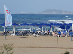 There are no queue for sun loungers today, although there were not that many tourists around yesterday, perhaps a little early? There is a small reconstructed windmill separating two small beaches, not now operating as the canvas on it's wheel completely blown out, still it's doorway kept Ann dry?