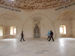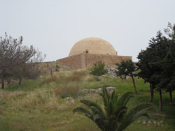 I quote " The Mosque of the Sultan Ibrahim Han - after the Turks captured the city in 1646, a mosque was built dedicated to the reigning sultan over the remains of the Catholic Church of Ayios Nikolas. The main feature of the mosque are the hemispherical dome (one of the largest in Greece). Following it's restoration it is now being used as a location for musical events." Well, the building is certainly not original, superb marble floors and roof - not long finished? Musical events, well? A group of workman were busy building a 17th century structure next door?