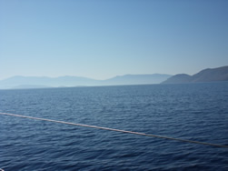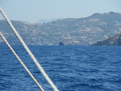 As we made the headland, we could make out "Ldi (Psiloritis)" it too with a good covering of snow on it's peaks, the wind began to drop off also and the sea turned glass like, back on went the engine.