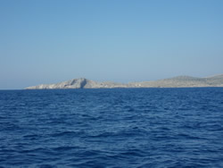 We wake up to a display of colours, the water by now, again like glass. We are to the west of the islands Khalki and Alimia, these two islands only a couple of miles to the west of Rhodes.