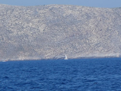 The northern coastline changed also, no beaches and resorts now only steep shorelines and very little fishing traffic now, probably due to the lack of local harbours etc? We passed the headland "Ak Stavros" we now crossed the large open sea area across to "Ak Ay Ioannis", well off shore to Iraklion the capital of Crete. We had initial though of visiting Iraklion, but once we looked at the hugh concrete jungle ashore, we felt the decision to pass was the correct one? The commercial traffic now increase also, passing both east and west of "Dhia" island, we gave the island some distance to the south of the island as not to loose our northerly wind.