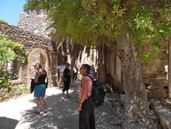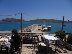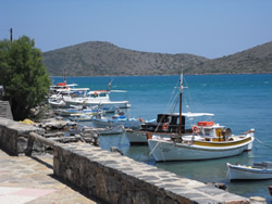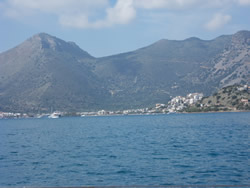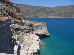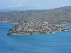 We then climb high into the hillside and stop at a panoramic view stop for photographs. The scenery is very impressive, the camera never depicts the true beauty as we keep saying, we can see Sailaway, a small pin point far to the south of us. When you seen the seaward opening to the Lagoon, it seems so easy and straight forward in the day, compared to our 1am arrival that morning? Things look so different in day light as opposed to total darkness? We look down to the Island of Spinalonga, up until 1958, a twentieth century Leper Colony. Originally a Venetian fortress further developed by the Turks during their rule it remained occupied by a turkish settlement until 1904 when Greece exiled 130 registered Lepers, men, women and children to the island, said to be an attempt to drive the turks out of Greece - I am sure it worked, in recent years it has been written about, serialised and films made.