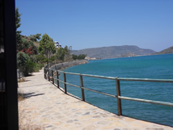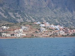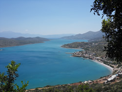 The lagoon is surrounded in all directions but the south by steep hillside on the mainland especially, a bridge and roadway to the south, joins the land mass to our east with the mainland. There appears to be no building what so ever on this land mass? The mainland to the west however, has the small port of Skhisma, and numerous tourist complexes, some complete, many not? To the north of the lagoon is the island of Spinalonga with it's dominating Venetian fort and a complex of Venetian and Turkish buildings, now uninhabited. It was a lepor colony up until the end of the Second World War, now a tourist attraction - pity they let the tourists back out actually?