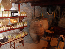 After a short walk around the village, nothing or no one to be seen, although we did see one parked car, we head back to the road train to visit the old olive oil press. The old press was refurbished by the family that have produced oil here for over 200 years we are told. They now have a more modern factory just out side of the village, and by chance they also own the taverna opposite the old mill - our lunch stop?