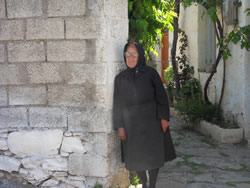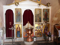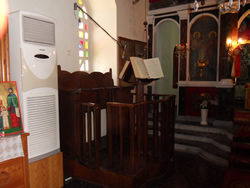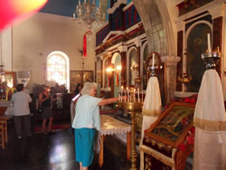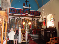 We eventually arrive at Vrouhas, we were originally told that the town was famous for it's Raki, but as we passed a "Raki Shop" the owner came out to beckon us in, we were hustled passed by the guide and taken to the village church - very confusing? The church was said to be one of the original orthodox churches on the island? It was destroyed during the war, it was rebuilt by the town folk's funding and the inside filled with donations from other churches.