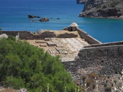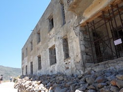 The island's greatest legacy was that of a 20th Century Leper Colony founded 1904, 130 people in the original settlement, men, women and children were taken through the "Dante Gate" - "the gate to hell" as it was known? For many years they literally survived in isolation with no assistance from the authorities at all? A solicitor from Athens, who's name I missed was sent to the island after his contraction of leprously. He fought and won the peoples right to social security payments, soon the island had a hospital, school, bakery etc. They became almost self sufficient with there own produce. They even had two "Raki" tavernas, Raki was also made on the island. They were also awarded their full, due medical resources, previously not even bandages had been supplied?