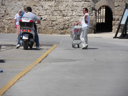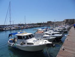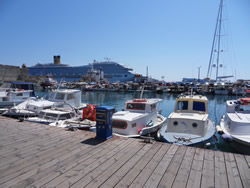 Next to Mandraki Harbour is Limin Emborikos, a small harbour for predominantly fishing vessels, it neighbours the adjacent larger port used by the cruise ships. There is even a couple of larger fishing boats converted into shops selling sponges, shells and the such like to the tourists as they leave the ships. The small ports perimeter is today walled as it was centuries ago?