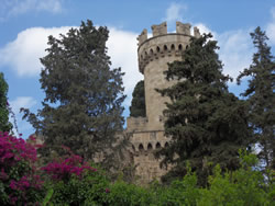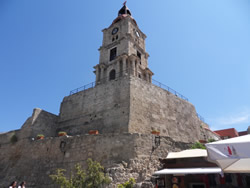The "Roloi" clock tower, built in 1852, offers the highest view point in Rhodes