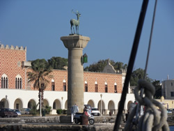 Inside Mandraki, organisation is almost nonexistent, you are pointed to a space and you berth bow, or stern too using your own anchor. It is described in the Pilot Book as "Hopelessly crowded with charter operators zealously guarding their own berths - crossed anchors and frayed tempers are the order of the day in Mandraki" That is just how we found it on our arrival and throughout our stay, it put an unfortunate cloud over a magnificant city? I personally suffered a great personal blow with the Authorities here, one which I shall take to my grave? Once secured we took our documentation down to the marina office to register, I passed over our documentation, customs took as much interest as they normally did and left the office. The marina manager, handed back the vessel paperwork back to me and asked for our passports. I passed over both passports, he looked at mine briefly and returned it too me and began to address Ann as "Captain". I was disgusted and enquired where his dog was, that received no reaction and he continued to log Ann as the vessel's Captain - my day was ruined? You may of already heard this tale, as we left the office, Ann telephoned, text, emailed and even sent off pigeons with the news of the events?