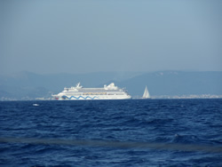 We have a great sail over, plenty of traffic to keep our minds occupied - Turkey can now be seen through the mist!