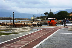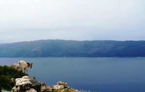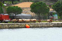 We now needed to back track west to Limnonas, we had some time back, had to wait behind a truck while they off loaded live chicks into a home stead, a dozen or so at a time by hand - guess what, now we were behind him and no where to pass? The truck and a number of shepherds slowed our progress, still, we had all day? Ann takes millions of pictures of sheep and other live stock, if we ever firm our routes on land again I am confident we will have livestock?