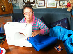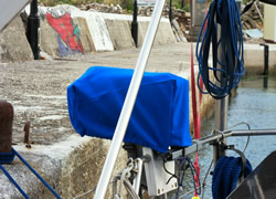 We keep our minds occupied, other than our blatant curiosity we have a few jobs, if not we create them, busy hands and all that good stuff? Ann makes us a replacement out board engine cover with pieces of material she finds in her sewing kit. Our old one was lost some how in Vliho during the winter, great job she makes of it too, pull cord and all!