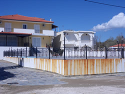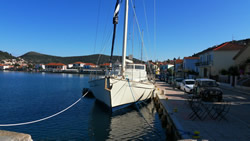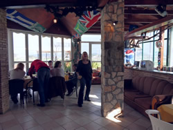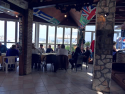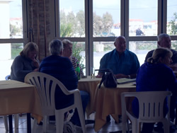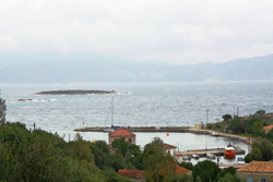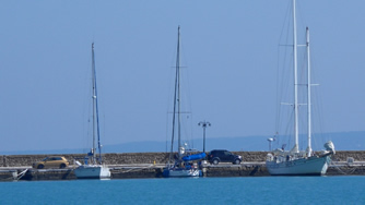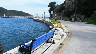 Tied up and settled by about 1800 hours, time to think about dinner? We had noticed a taverna situated along the quay at the other side of the ferry quay we sat behind - it certainly seemed popular, plenty of people, by car or foot passed Sailaway making their way to and from the taverna We thought we should give it a shot, if nothing else to "toast" our safe arrival as Sailaway was dry! We walked up to the taverna and started to make our way around to the front door every one seemed to be using. We were attracted by a gent knocking on the window, pointing to a side door. As we entered, he waves us over to his table, he asked "You have just arrived?", they had clearly watched us coming in? He had already found an additional chair for us to sit at their table, he declares "We have just finished eating, will you join us for a drink?" We sat down and he called one of the girls over and took our drinks order. It was only then introductions began, they were Anthony (the recently retired Port Captain), his wife Stella and a friend, which was a true Greek name. I could not say it, never mind spell it? We sat, and discussed what we were doing here this time of year, more drinks came, Anthony insisted on paying. Anthony declares that he is trying to have Stella take up the cruising life for at least five months of the year, it was obvious he had a job on his hands? We tell them that we must order some food, we were told the menu was pretty dated, as most on there was out of season. Anthony ordered our food and I have to say made great selections. They leave before our food comes, they ask if we can meet again, Ann is tasked by Anthony to convince Stella that cruising is fun? They leave, Ann and I are amazed at what just happened, this is the first time we have ever been greeted in such a manor in Greece, friendly, generous - all the tributes one reads about the Greek people?