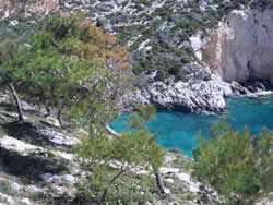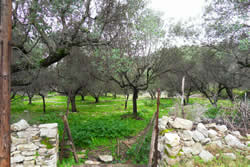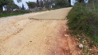 We passed a smaller ormos called Skhoinos, a small anchorage situated at the entrance, it was occupied by an English sailboat, probably an over night stop over with no further requirements than a safe berth for the evening? The the question regarding the roads was answered, as we continued south on the island, the road just suddenly stopped! As we drove around the island this was how it was, in all directions except north - there was only one road! The roads now became dirt tracks, some quite badly flooded or even collapsed. There were many properties on these roads, even sign posted beaches, we only continued as long as the car was comfortable, after all if we broke down or got stuck we could not even give our position?