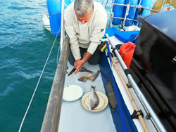The beauty of living on water is the availability of fresh food below, the difficulty is catching it? To day we chose fish for dinner, in fact we were lucky enough to have one each!