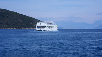 Each week day the ferry from Patras arrives about midnight bring every piece of required merchandise for that day, it leaves 0700 the next morning. Every thing used on the island comes by this ferry, the island boasts the most expensive fuel on the islands (€1.95/litre for diesel)? We had taken 250 litre on board on Levkas at €1.48, that price included a surcharge for delivery to the boat by tanker? It is an expensive island but I am sure the delivery costs are inflated?