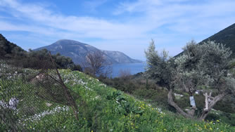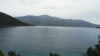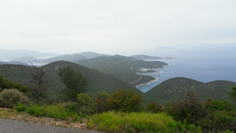 The road north now crossed over to the west coast of the island, we drove parallel to the Ithaca Straights, on the other side Cephalonia.
