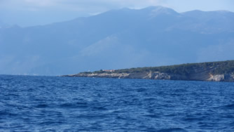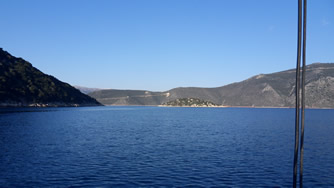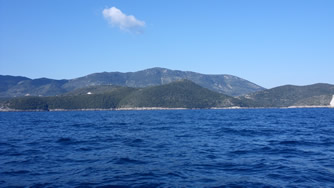 In front of us, to the north west, on Cephalonia we could make out the harbour of Friskardho on Cephalonia, twice we had tried to visit in high season and could not get into the harbour for charter boats - now it lay deserted.