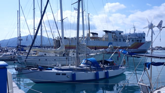 We are now comfortable with the noise of the large ferry berthing, we barley hear it? Out at anchor it is quite daunting as you watch it drop anchor, circle 360 degrees and berths "stern too."
