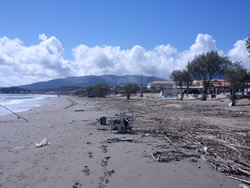 Laganas, the town was a monstrous tourist resort, all the restaurants bars, discos all closed - the main drag full of litter and buildings under refurbishment for the coming season. It could only be described as, dirty and tacky, but I am sure it will look very different to the tourists in the season - especially in the dark! That is clearly an age thing! We followed the signs for the "Turtle, reserved breeding area", the turtles clearly a source of revenue, had their own hotels and bars on the beach, closed and being reworked, but of coarse the turtles are not due until June?