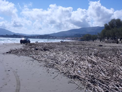 The beach area was covered with bamboo, little and debris, swept in by the winter storms, all to be cleaned up before the turtles arrive?