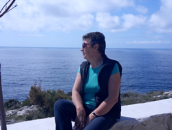 Less than twelve hours before our arrival at Vathi we had been sitting in Porto Kastos awaiting the weather to peak about mid afternoon and then weaken. We had the option of traveling to Vathi, possibly on Saturday, but more likely Sunday on the forecast northerly winds, that was not to be. As mid afternoon approached the wind shifted from south east, to east - the only direction of which our shelter was weak? This development brought the huge swell directly through the harbour entrance, it became uncomfortable very quickly. Two of the islanders arrived to tend to the small boats in the inner harbour, adding ropes etc, no room in there for us. The harbour was too narrow to allow us to leave the wall and anchor safely, our options were becoming few? We tidied up, put on our wet gear and started our engine, the swell was now such that it, at times, it put our water line almost to the height of the harbour wall - not good, the winds showed no sign of abating either. Our hand was then forced, our stern line snapped and we began to swing away from the wall, I asked Ann to begin to cast off the lines, the only thing to be done was to throw them ashore. Ann struggled with the bow line, I asked her to cut it, we needed to get clear of the wall - buying new lines was the least of our worries. We broke clear of the wall and made our way to the centre of the small harbour, the initial thought was to try and control Sailaway on the engine, within the limited shelter of the confined harbour. Control became harder as the winds now reached over thirty knots, to reduce risk the only option was to get out into open water, we prepared what we could in the time we had and we left the harbour. We were now in large seas and strong winds, straight on the nose, our progress was slow but in the right direction. Then, the bildge alarm began to sound as it brought the pump on - we were taking in water from some where? I then realised that we had not closed the anchor chain locker correctly, as our bow was disappearing into each wave as it approached we needed it closed, water tight urgently. I asked Ann to go forward to secure it, I watched as she too disappeared into each on coming wave. Ann did an excellant job, she returned to the cockpit, drenched, even her pockets full of water - "did you enjoy that?" I asked, Ann grinned.