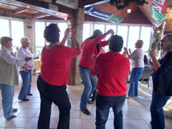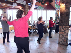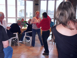The dancing began, we were bought a couple of drinks so Ann warmed very easily to the challenge - we were by now fully integrated into the event, never being made so welcome anywhere before, it was great. We looked at the time, the afternoon had flown by but it was time for us to leave. We were just putting on our coats when Ann was called out to sing, the look on her face was brilliant, I explained what had happened? Ann sung her song (I am the music man) very well, all clapped, as she walked back we tried again to leave again?