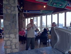 I had just put my jacket on again, when I was called out, we should have known better than to think we would get out without performing? Ann and others had warmed the crowd well for me? Accompanied at times, I performed an excellant performance of "Simply the Best". The applause was out standing - some would have said "clapped off?" We were now past that "point of no return" so we stayed for another drink! Brenda's party was excellant, we were accepted in a tremendous way, as one of the community and would like to thank all involved. The afternoon/early evening was such an intense series of introductions, names were forgotten, we apologise for that - good luck to you all!
