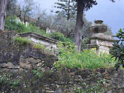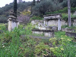 We dropped the gas bottles back on Sailaway, and then made for our next point of interest, an English Cemetery. The Cemetery, according to the literature was founded in 1675 for the burial of British merchants, nobles and military, along with their family. The literature read " The impressive funerary monuments, tombs in the form of sarcophagi, tombstones and plaques were built by local stone masons and depict the high financial and aesthetic of that time" Well worth a visit we thought - we found it in a dense built up area and yes it was shut, not due to the season but condemned! The cemetery had been left to natures coarse's, the grass at times a meter high, nothing like the pictures in the book - what a difference a year makes? The gates were chained but we noticed a man tending his adjacent garden which also had access to the cemetery, I asked him if we could enter, he politely said yes.