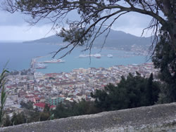 As we approached the castle, the views of the harbour were great, far below us we could see Sailaway sitting in the harbour. Beyond that our route south tomorrow, past Laganas and the protected Marine reserve - do not start me off on that again!