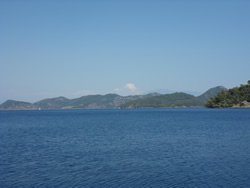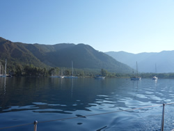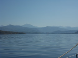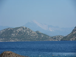 The back drop of the small bay is very attractive, the mountains to the north and east very dominant although never appear to be totally, visibly clear?