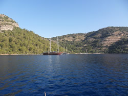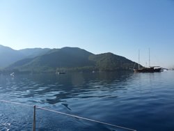 As we sail into Fethiye Bay, we pass the expected tourist resorts, the marked bays and anchorages still very quiet, mainly gullets, we see only one private vessel anchored off in more than three bays?