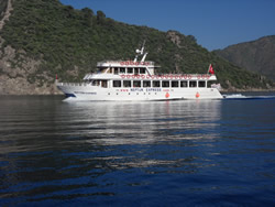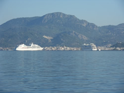 As we pass of Marmaris a large liner arrives to join another, the local tourist traffic began to emerge - noisy sods! The Neptune Express passes us, this is the vessel Ann and Mum took the Dalyan region, not a very honourable crew, I got both of them back and never saw the three camels I was promised?