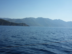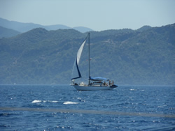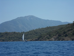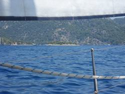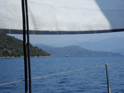 We make our way towards Fethiye and Fethiye Island, the wind gaining in strength, becoming quite a pleasant sail.